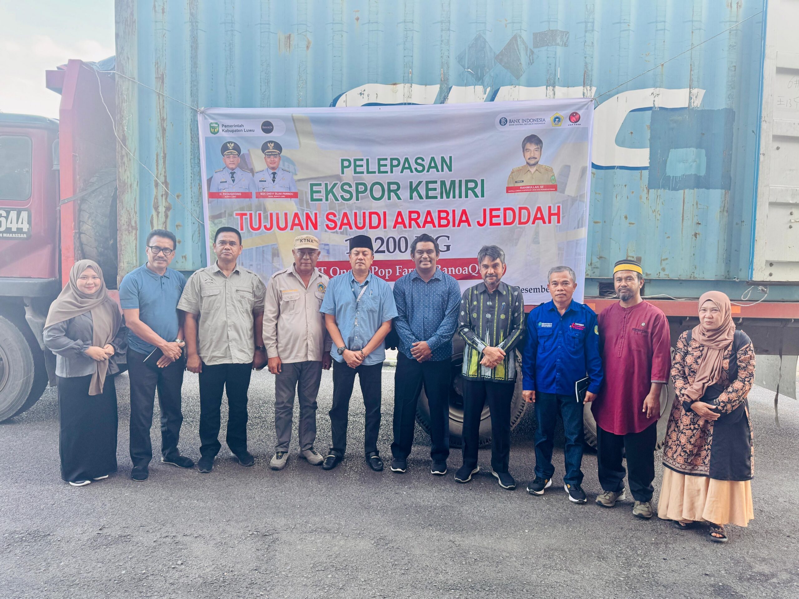 Dalam sambutannya, Plh Sekda Luwu, Muh. Rudi, menyampaikan bahwa pelepasan ekspor kemiri ini menjadi bukti bahwa Kabupaten Luwu memiliki potensi besar untuk mengembangkan komoditas lokal hingga menembus pasar internasional.